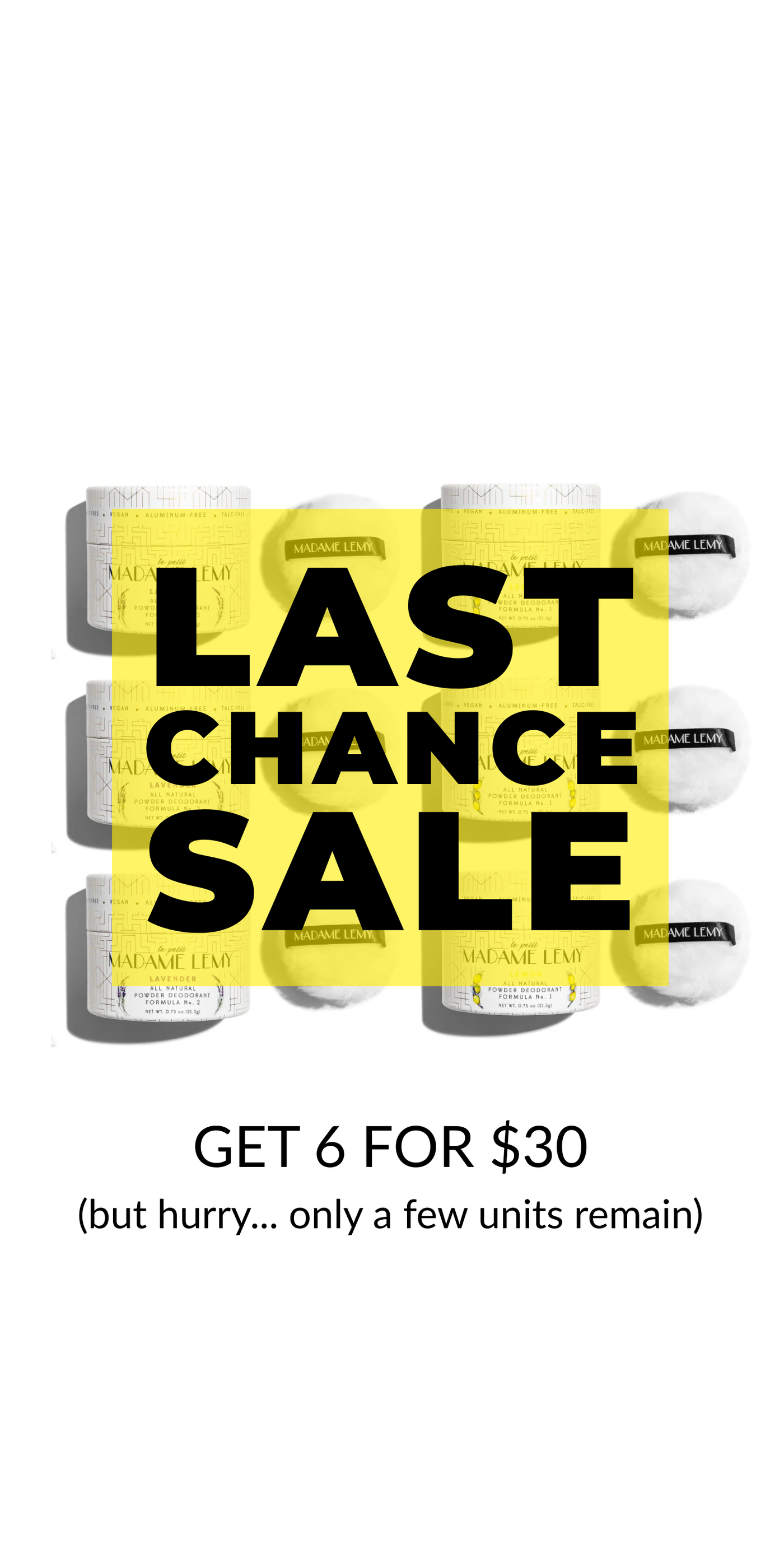 We make all-natural body powders and stick deodorants, completely free of toxic chemicals like aluminum and talc. All our products are safe to use, unlike most drugstore deodorants and body powders, and can be used on armpits, breasts, inner thighs, feet, and even on your hair as dry shampoo!